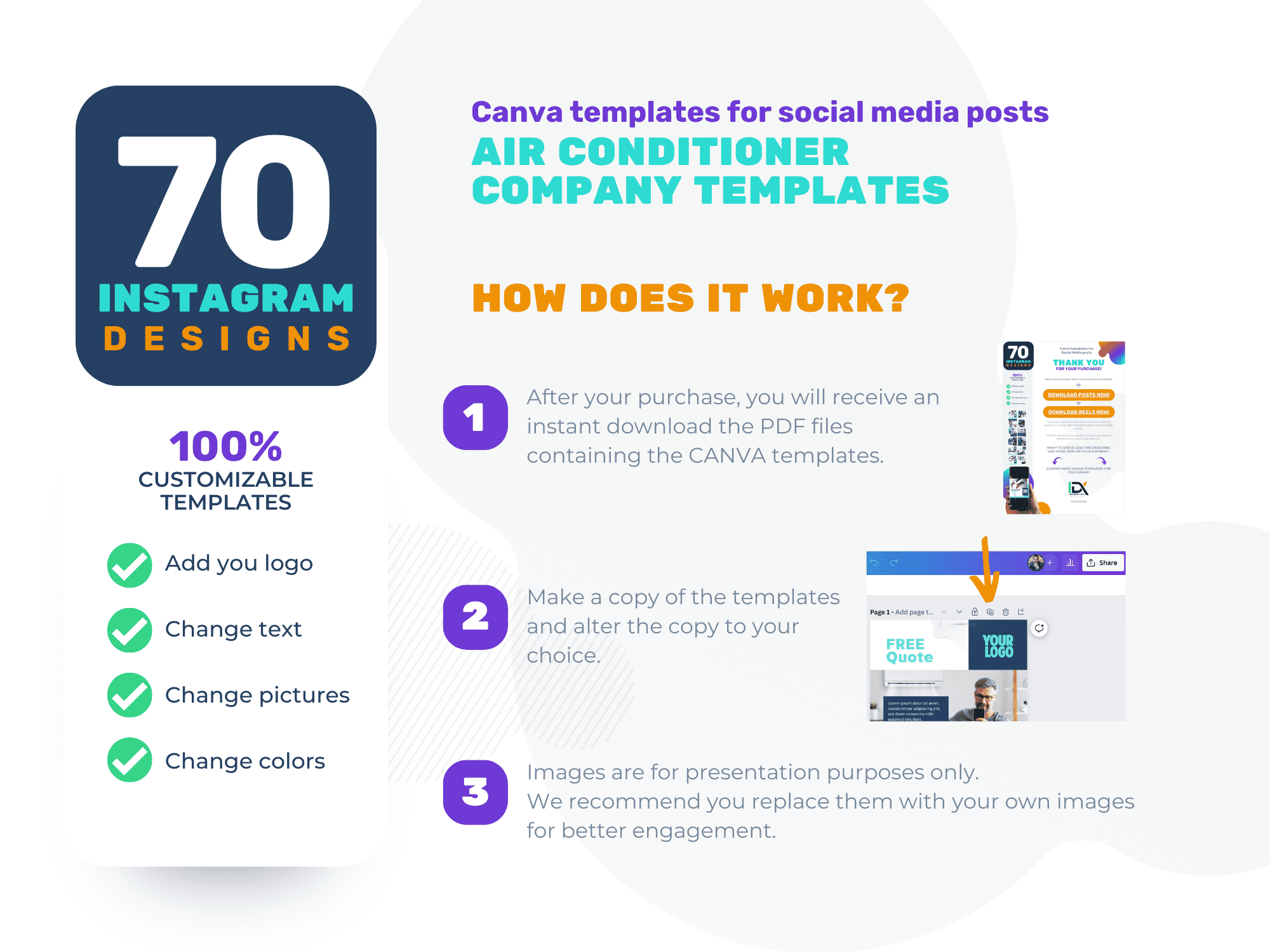 With these simple Instagram templates, you can create months’ worth of content for your HVAC business quickly and easily. No need to hire a social media manager or spend time creating posts from scratch. All images are from Canva and will come with a watermark if you don’t have a paid Canva account.
